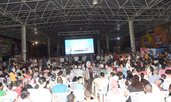 Konuşmanın ardından Başkan Zeydan Karalar, vatandaşlar ile birlikte “Gönül Yarası” filmini izledi. Film sırasında Seyhan Belediyesi’nce ücretsiz olarak çekirdek, patlamış mısır ve gazoz dağıtıldı.