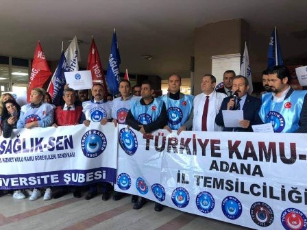 Kamusen’in Tüm Türkiye’de eş zamanlı olarak düzenlediği basın toplantısının Adana’daki adresi Balcalı Hastanesi önü oldu Türk Sağlık Sen 2 Nolu Şubenin ev sahipliğinde gerçekleşen basın toplantısında memurlar yapılan maaş zammını bordro yakarak pretesto etti Düzenlenene Basın Toplantısında Kamusen İl Temsilci Vekili Yusuf Ertem,Türk Eğitim Sen 1 Nolu Şube Başkanı Durdu Mehmet Girgeç, Türk İmar Sen Adana Şube Başkanı Zakir Akbilmez, Türk Eğitim Sen 2 nolu Şube Başkanı Ferhat Utlu, Türk Enerji Sen Adana Şube Başkanı Mehmet Yeyen, Türk Sağlık-Sen 2 nolu şube başkanı Ali Uçar Atik’de hazır bulunde Grup adına basın açıklamasını Kamu-Sen İl Temsilci Vekili Yusuf Erten Gerçekleştirdi Erten açıklamasında şunları kaydetti
