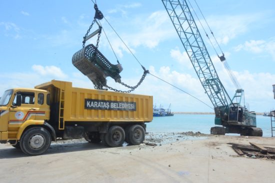 Karataş Balıkçı barınağında bulunan yüzlerce balıkçının tekne bakım alanlarında oluşan kum birikmesi sorununu Karataş Belediye Başkanı Necip Topuz çözdü.