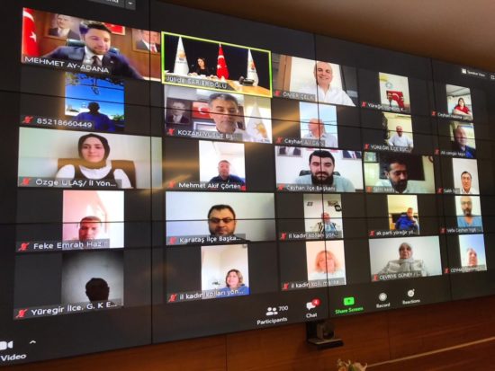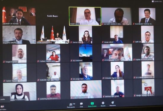 AK Parti Adana’da, genel başkan yardımcıları, milletvekilleri, belediye başkanları, meclis üyeleri, il ve ilçe 3 kademe başkanlarının yanı sıra mahalle başkanlarının da katılımıyla, telekonferans yoluyla yaklaşık 2 bin kişiyle bayramlaşma programı gerçekleştirdi.