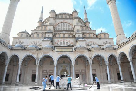 Adana’da çalışmalarını Merkez Camisi’nde başlatan ekipler buharlı ve ozonlu sıcak su ile cami içinde ve dışında yıkama yaptı. Bahçesinde de temizlik çalışmalarının gerçekleştirildiği camide haşereye karşı ilaçlama ve dezenfekte gerçekleştirildi. Vatandaşların uzun bir aradan sonra Cuma namazlarını güven içerisinde kılabilmesi için aynı çalışma Adana genelindeki tüm camilerde yapılıyor.