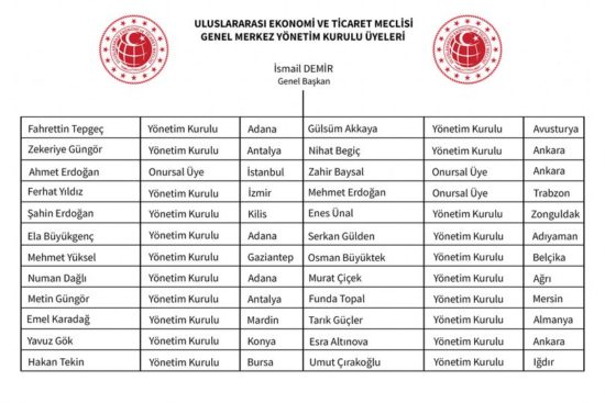 ULUSLARARASI EKONOMİ VE TİCARET MECLİSİ YÖNETİM KURULU LİSTESİ OLUŞTURULDU
