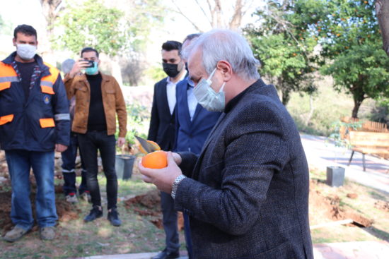 Kozan Belediye Başkanı Kazım Özgan ve beraberindekiler Sosyal Yaşam Merkezi bahçesine hem lezzeti hem de fiyatı ile son zamanlarda Kozan bölgesinde dikkat çeken kamkat fidanlarının dikimini gerçekleştirdiler.
