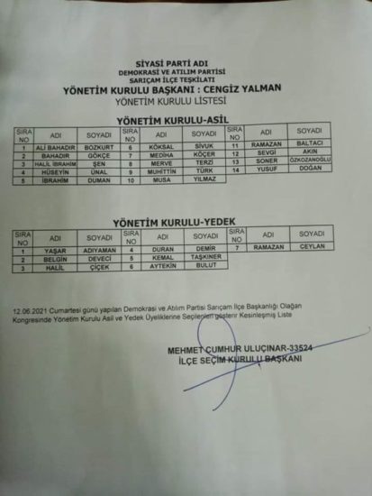 Deva Partisi Sarıçam İlçe Başkanı Cengiz Yalman, İlçe seçim kurulundan mazbatasını alarak yönetimdeki arkadaşlarıyla ilçe binasında bir araya geldi Sarıçam'ın en çalışkan en başarılı en tanınmış en dürüst en yardımsever en sevilen insanlardan bir yönetim oluşturduk diyen Yalman sözlerine şöyle devam etti Biz Sarıçam'da ''EN'leri bir araya getirdik Ve ''EN'' lerimiz devam edecek En güzel ilçemiz olan Sarıçam'a En güzel hizmetin gelmesi insanlarımızın En iyi şekilde yaşaması için var gücümüzle mücadelemizi sürdüreceğiz Göreve geldiğimizi günden bu yana kapı kapı dolaşarak binlerce insanımızla kucaklaştık Partimize gösterilen yoğun bir ilgi var Bu ilgiden dolayı vatandaşlarımıza müteşekkiriz Ve onların yüzünü kara çıkarmamak için çıktığımız bu kutlu yolda dur durak bilmeden emin adımlarla ilerleyip Ülkemizin kurtuluş reçetesini yazacağız Her şey Türkiye için Her şey Sarıçam için dedi