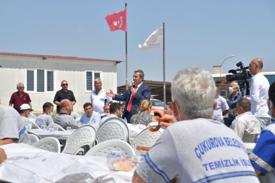 Çukurova Belediye Başkanı Soner Çetin, ziyaret ettiği Temizlik İşleri Şantiyesinde işçiler tarafından kurbanlar kesilerek karşılandı.