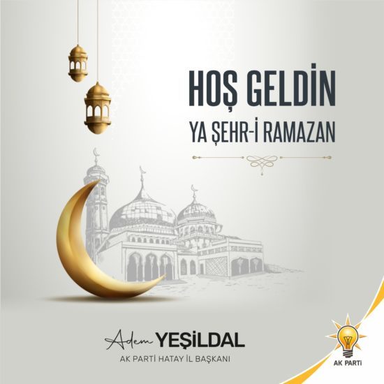 AK Parti Hatay İl Başkanı Adem Yeşildal, Ramazan ayı başlangıcı dolayısıyla bir mesaj yayımladı. Başkan Yeşildal mesajında, Mübarek Ramazan-ı Şerifin tüm İslam Âlemine ve hemşerilerimize hayır, bereket ve esenlik getirmesini Yüce Allah’tan niyaz ediyorum dedi.