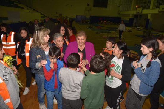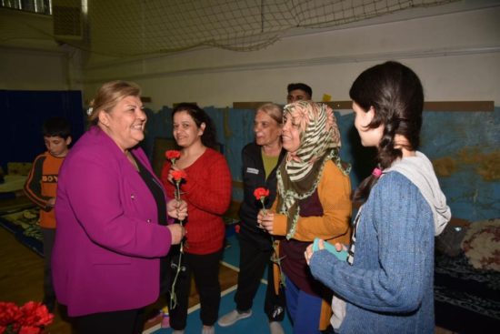 Ceyhan Belediye Başkanı Hülya Erdem, deprem toplanma alanlarındaki kadınlara karanfil verdi, çocuklara oyuncak dağıttı