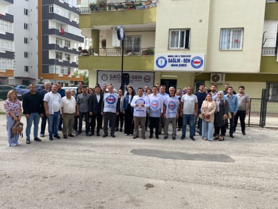 Sağlık-sen Adana Şube Başkanı Bekir NENNİOĞLU Aile Sosyal Hizmetler Müdürlüğünde ek ders karşılığı görev yapan Meslek Mensupları ile ilgi basın açıklaması yaptı.