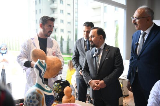 Sarıçam İlçe Milli Eğitim Müdürü Necmettin Dardağan ile birlikte Ferdi Tayfur Sanat Merkezi ve Müzesi içerisinde yer alan Kır Çiçekleri Sanat Atölyesinde açılan kursu ziyaret eden Sarıçam Belediye Başkanı Bilal Uludağ, kursiyerler tarafından, sıfır atıktan yapılarak ekonomiye kazandırılan ürünleri inceledi.